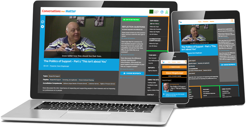 Conversations that Matter has more than 90 short (5 to 15 minutes) videos that can be viewed on a computer, a tablet, or an smartphone.